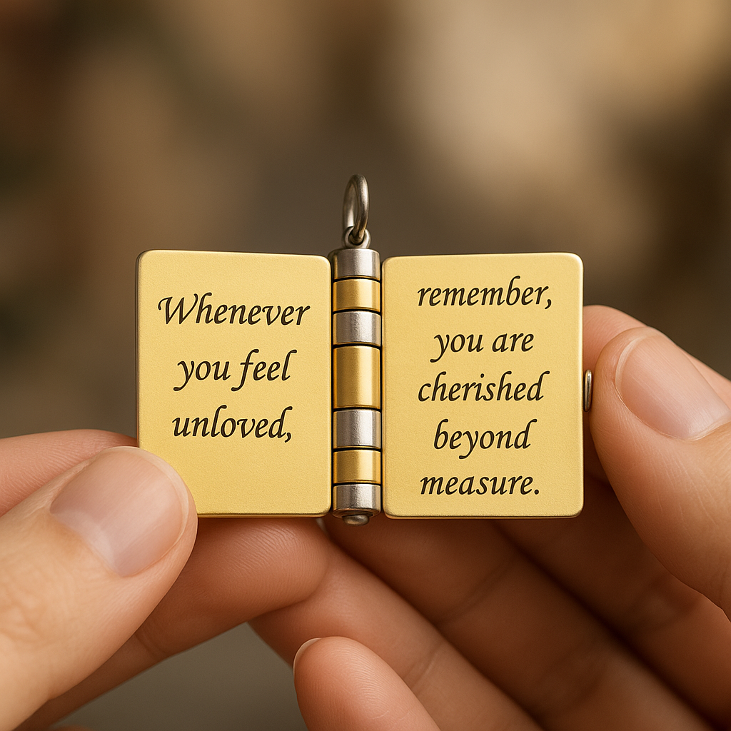 This necklace opens like a book, revealing a heartfelt message inside. It's more than a gift; it's a daily reminder of love and connection, perfect for any occasion.